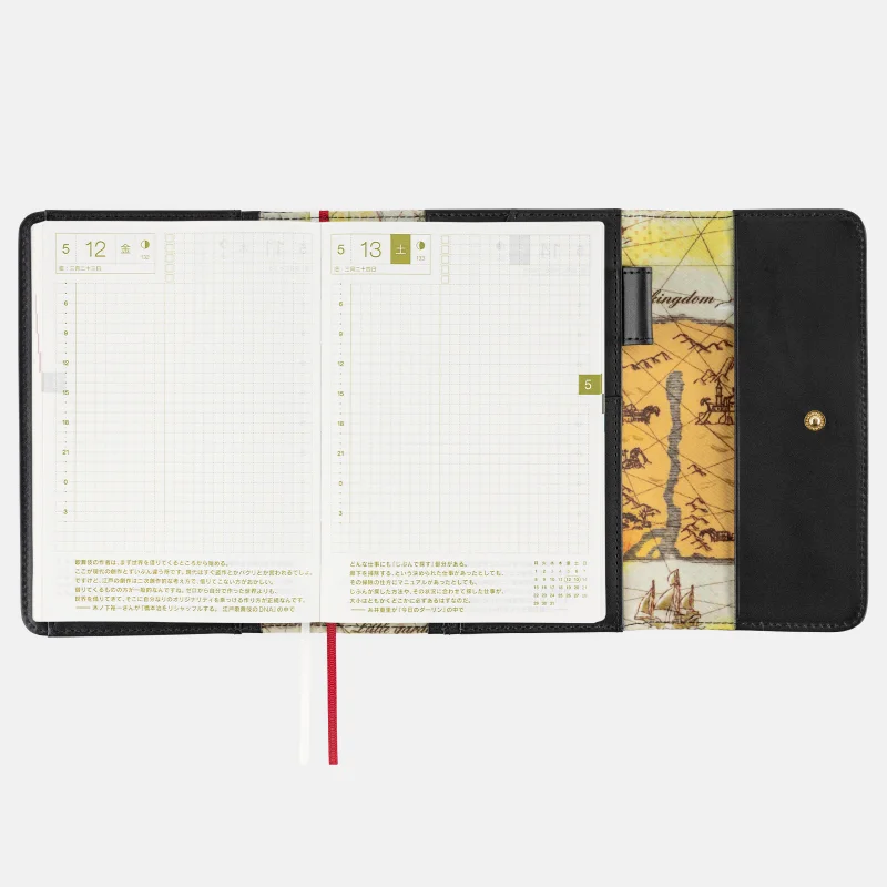 This compact A6 size techo has spacious daily pages and a simple graph-paper design that offers plenty of freedom to draw, paste, and write.