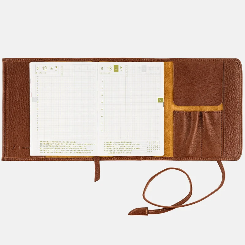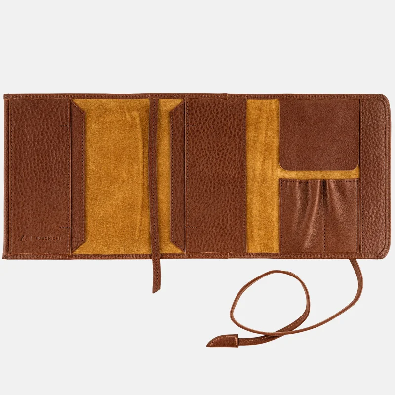 There’s also a pocket where there's the opening to slip in your techo. The pocket is the perfect size to keep your cards and business cards. The logo of Tsuchiya Bag Factory and Hobonichi is embossed on the bottom left.