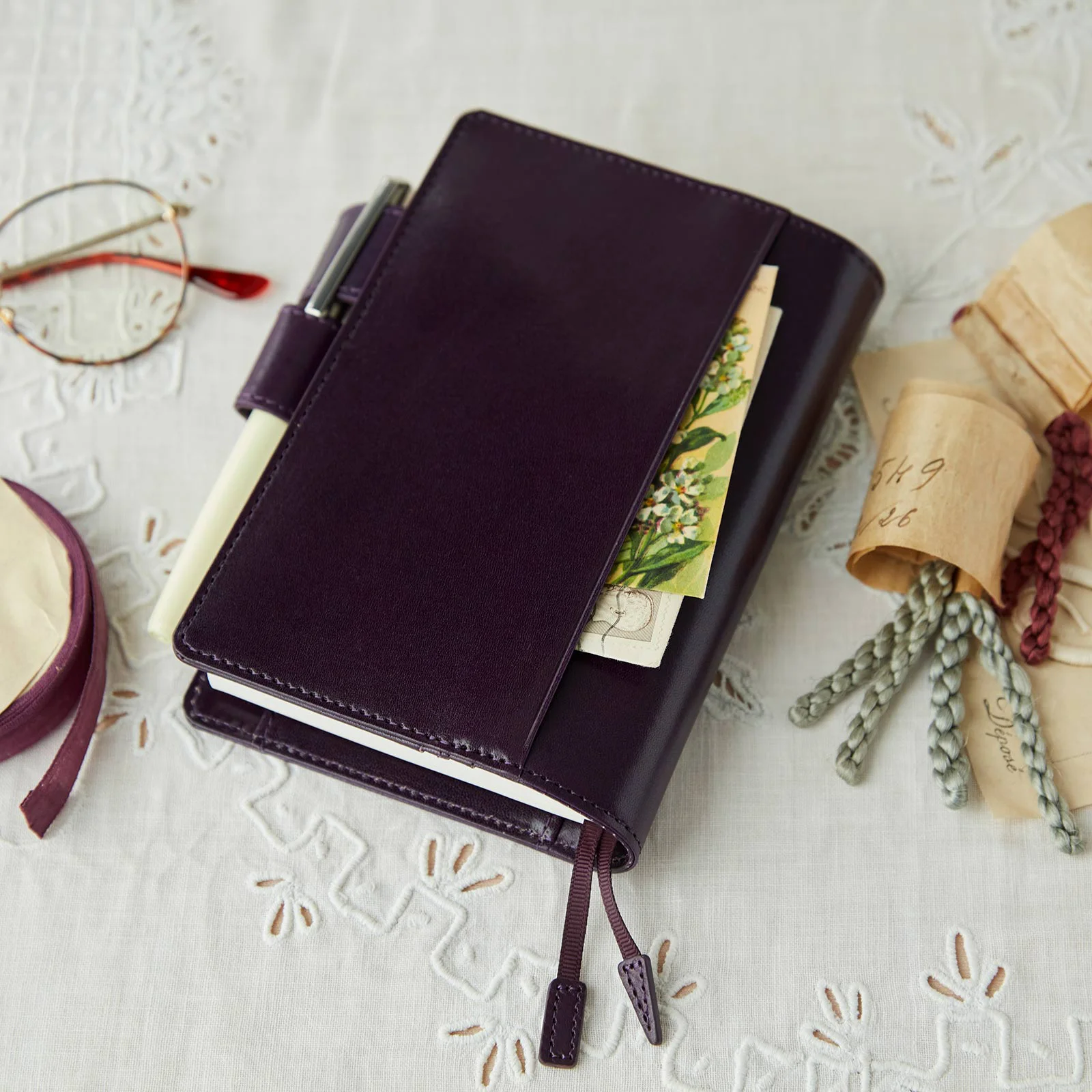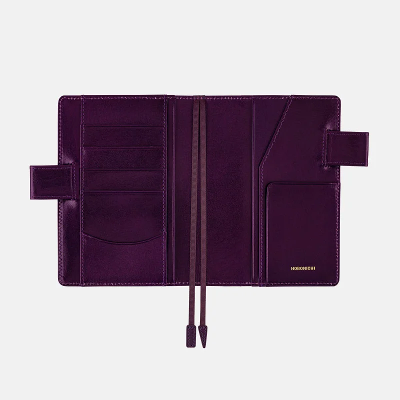 This elegant and calm butterfly-stopper type cover was made with cow leather from Tuscany, Italy that has been dyed a beautiful, deep violet.