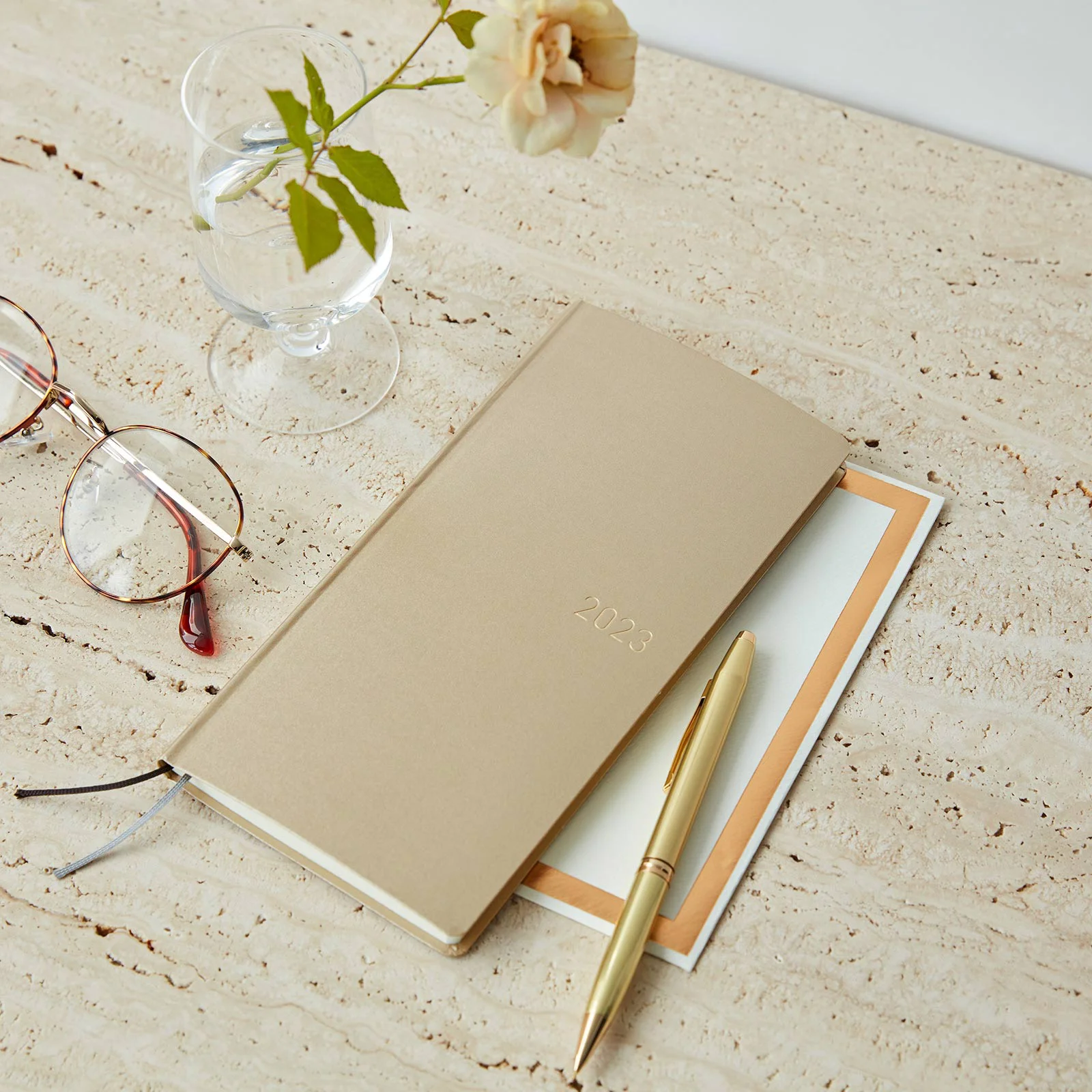The cover has been constructed as a light, hardcover book with some give to it so it still bends. The paper is finely micro-embossed and has a slightly grainy feel that will make you want to touch it all the time. The year 2023 is beautifully foil-pressed in white silver.
