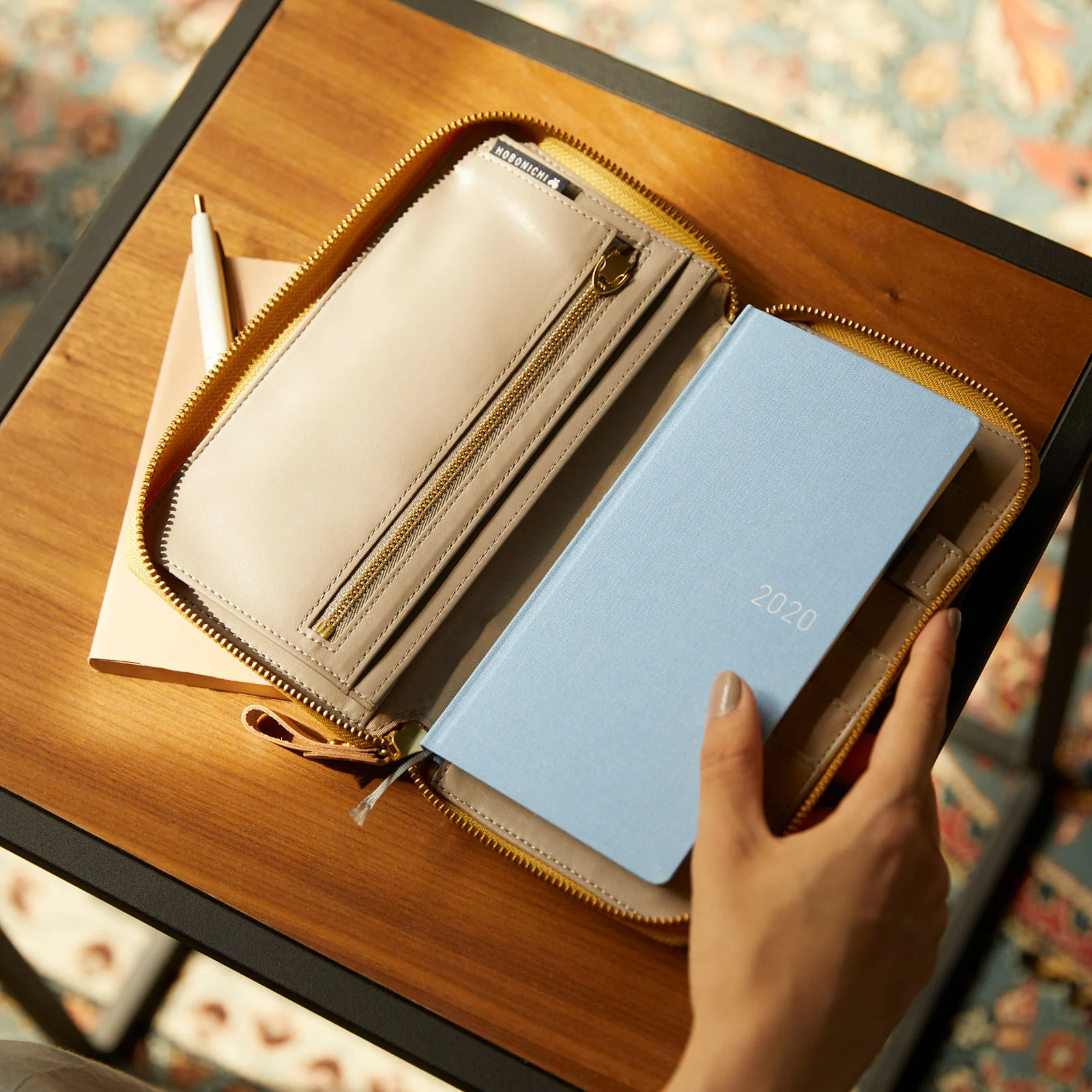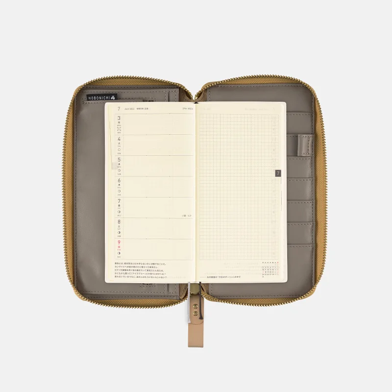 Although path is already a popular design, minä perhonen has created this new colorway especially for the Hobonichi Techo. The Weeks cover has a caramel-colored tint reminiscent of the sunlight bathing the path, and the embroidery is a refreshing green and gentle pink.