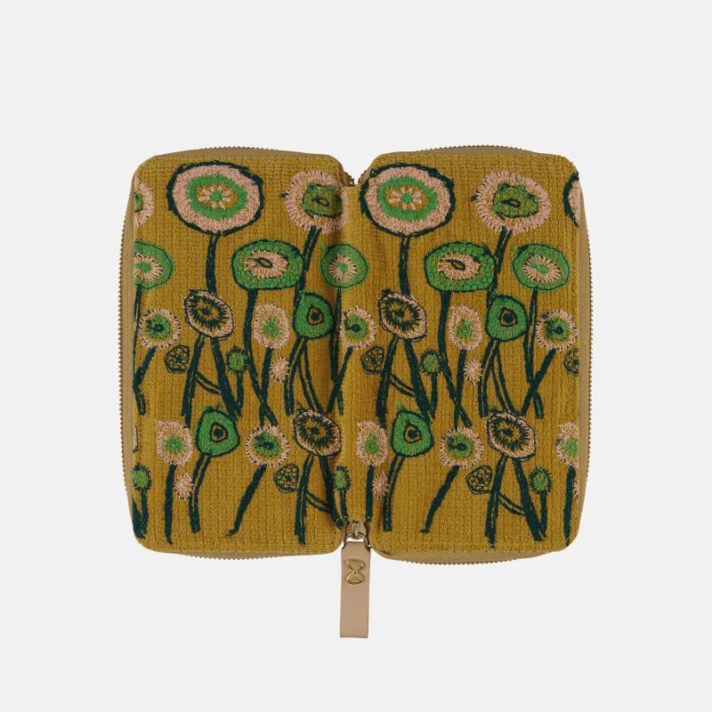 The daring use of corduroy, with its extra-fine construction, gives this cover a wonderful feel in your hands. The embroidery has been rearranged to fit the flowers along the long and thin shape of the Weeks cover.