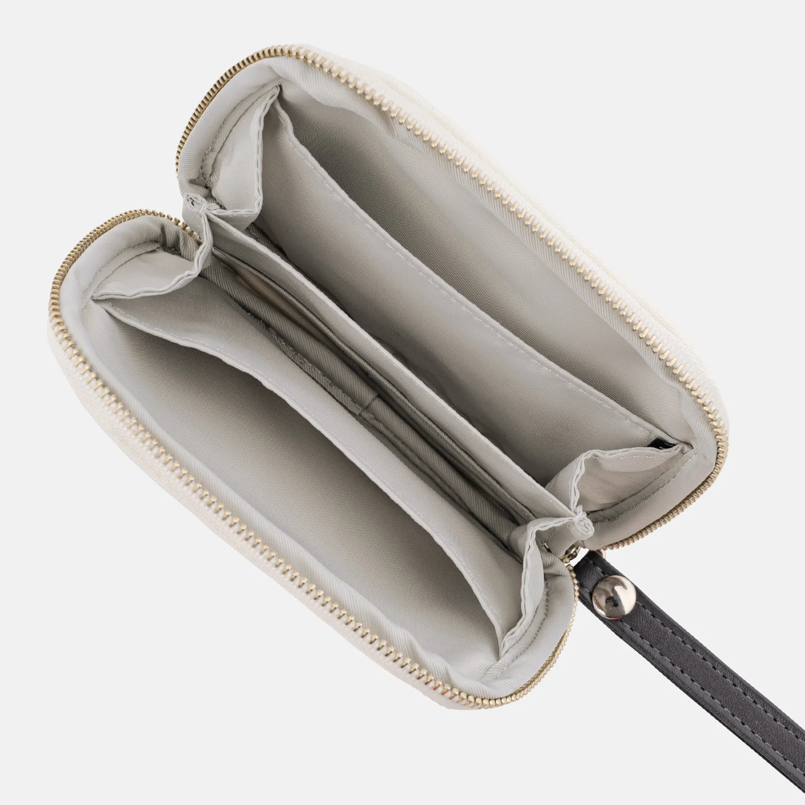 The pouch opens accordian-style and is the perfect size for storing cards. The interior is split into four zones to allow for detailed organization. While compact, the pouch also has enough storage space to hold items with volume, such as lip balm and earbuds.