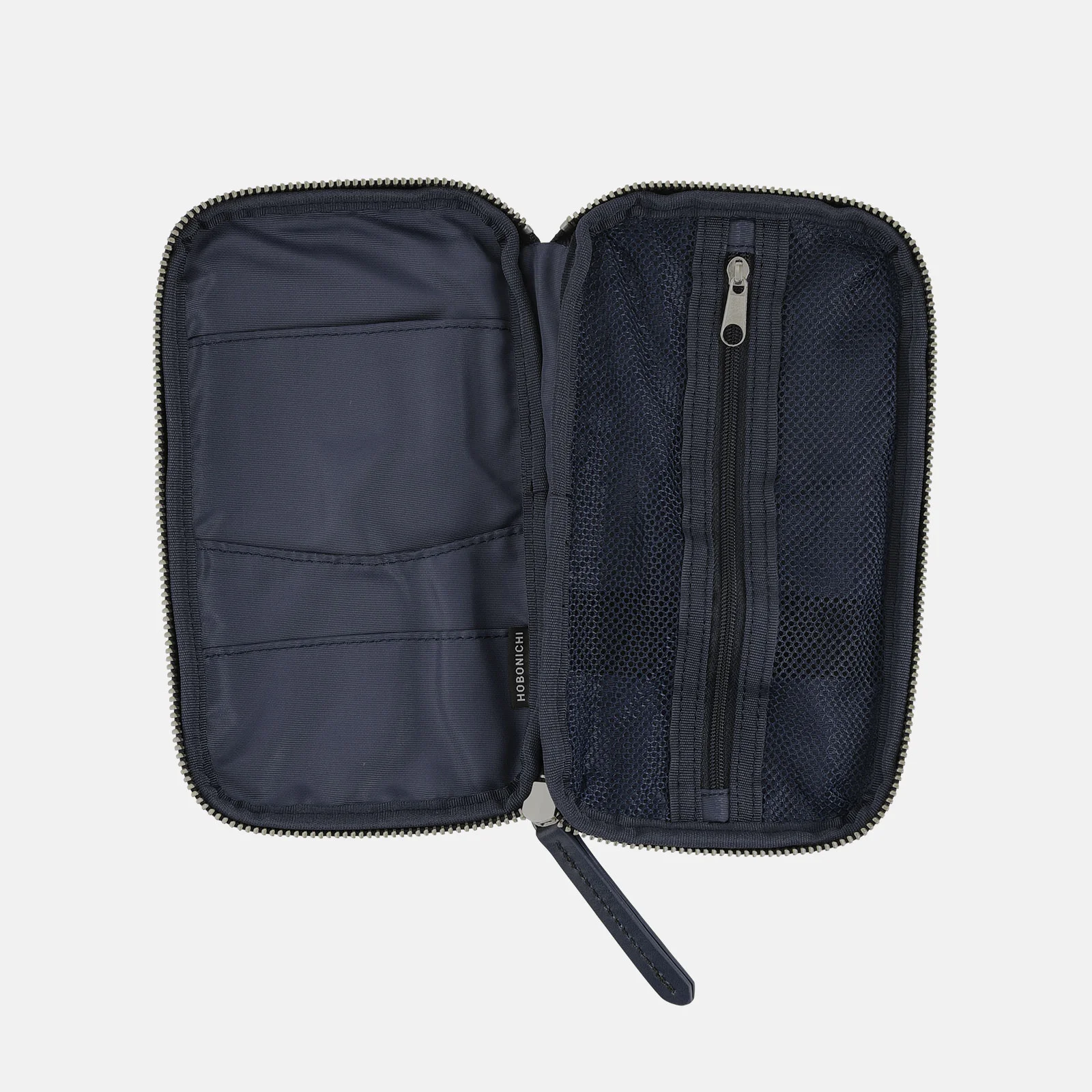 The Small Drawer Pouch is the size of a long wallet and fits writing utensils, cards, charging cables, and other slim items. The pouch can lay open completely flat when it’s unzipped, making it easy to glance inside and grab what you need.