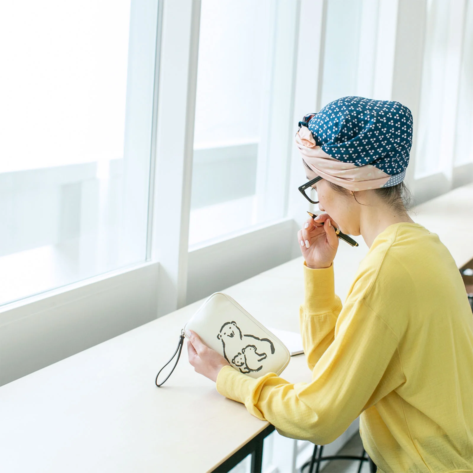 Illustrator Izumi Shiokawa drew this piece called “Polar Bear.” The illustration was first featured in a polar bear exhibit hosted by Hoboinchi in 2021, and was then featured on a 2023 Hobonichi Techo cover. Now it’s available for the first time as a Drawer Pouch design.