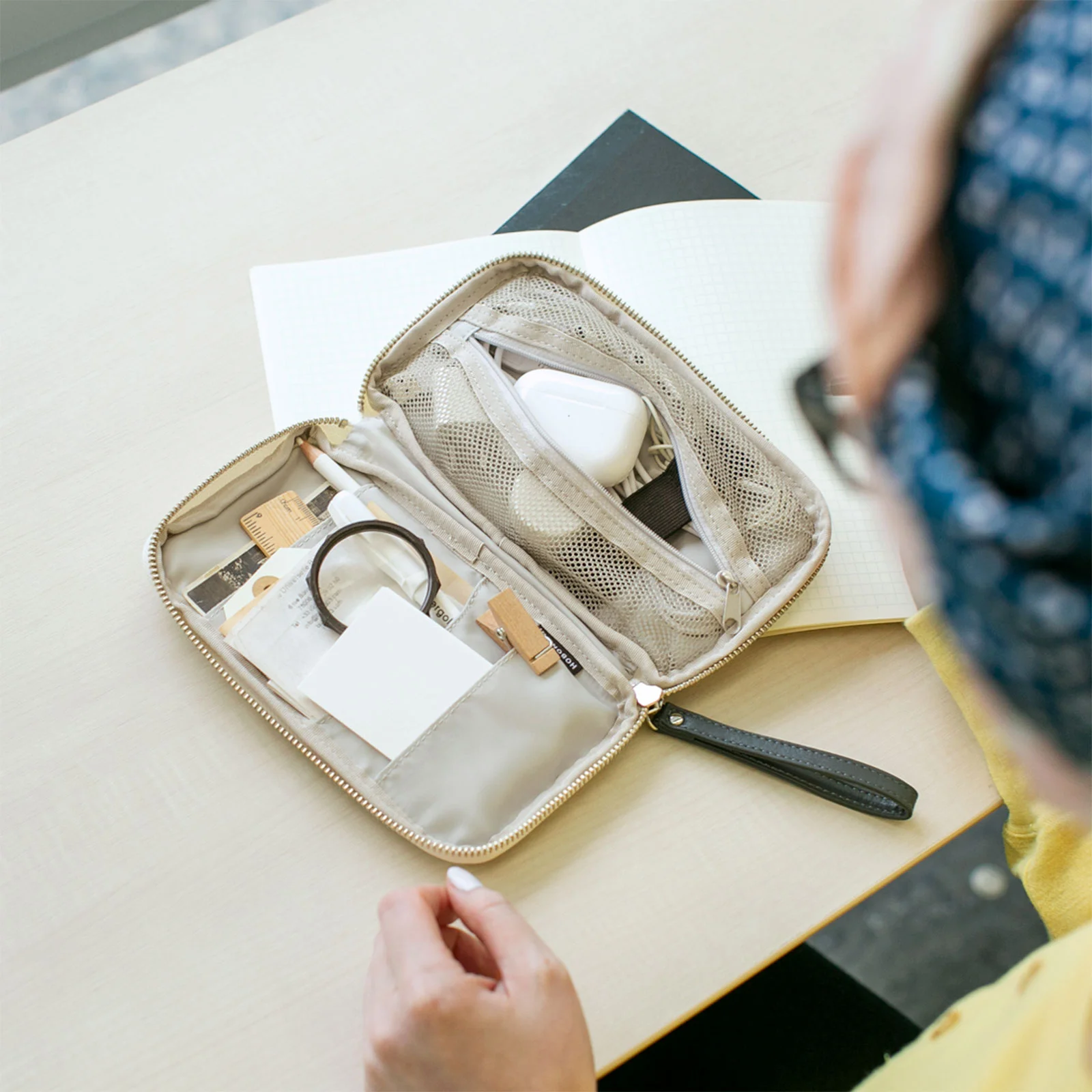 This pouch is like carrying an entire drawer with you wherever you go. Keep it on hand to easily access stationery whenever you need it, or use it on your desk to safely store your important items.