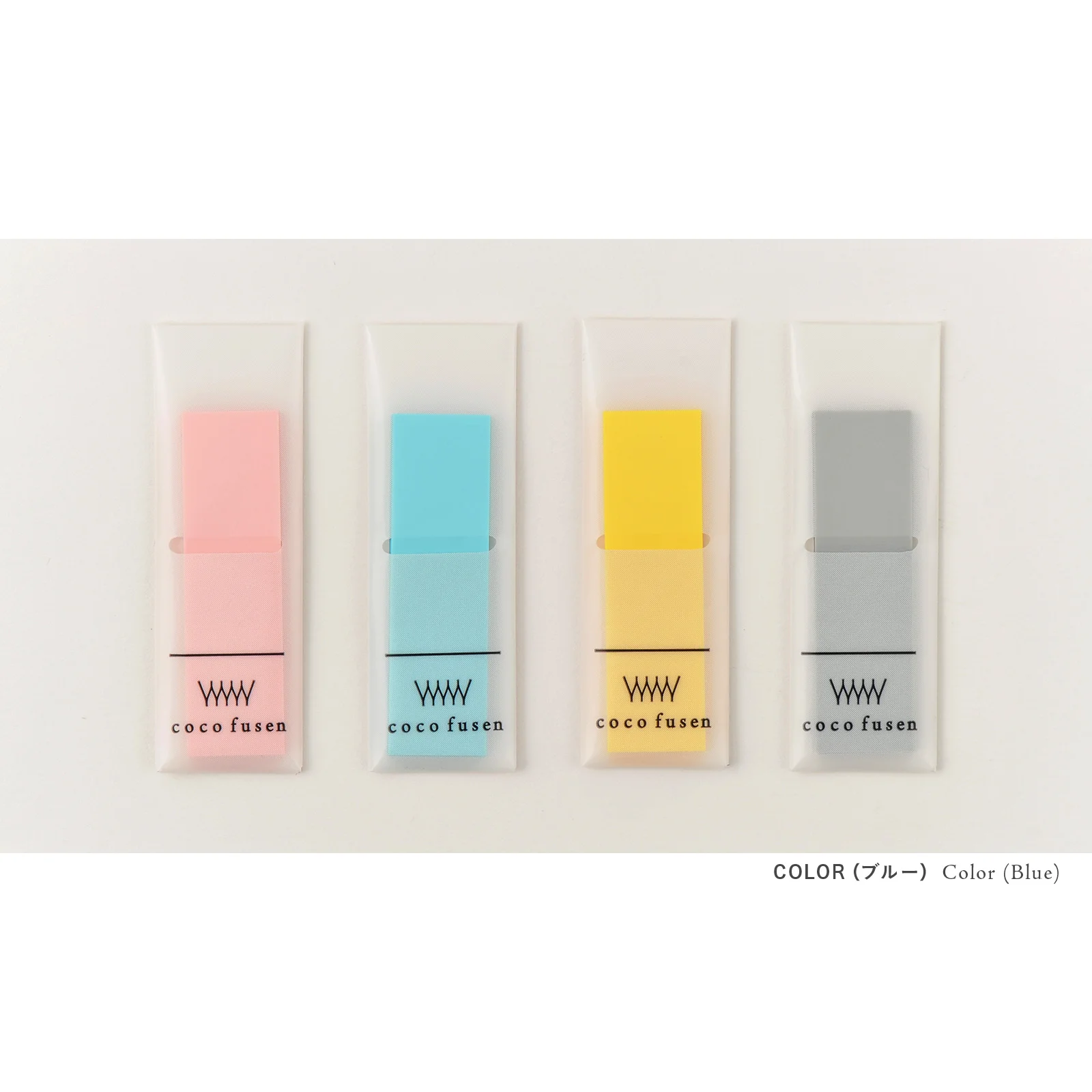 Kanmidococo fusencocofusen is a sticky note with a dispenser that pops out the next sheet every time you pull one out. The back of the dispenser has a strip of tape to attach it to the front or back page of your planner. This feature is especially useful in the Weeks book, which otherwise lacks pockets.
