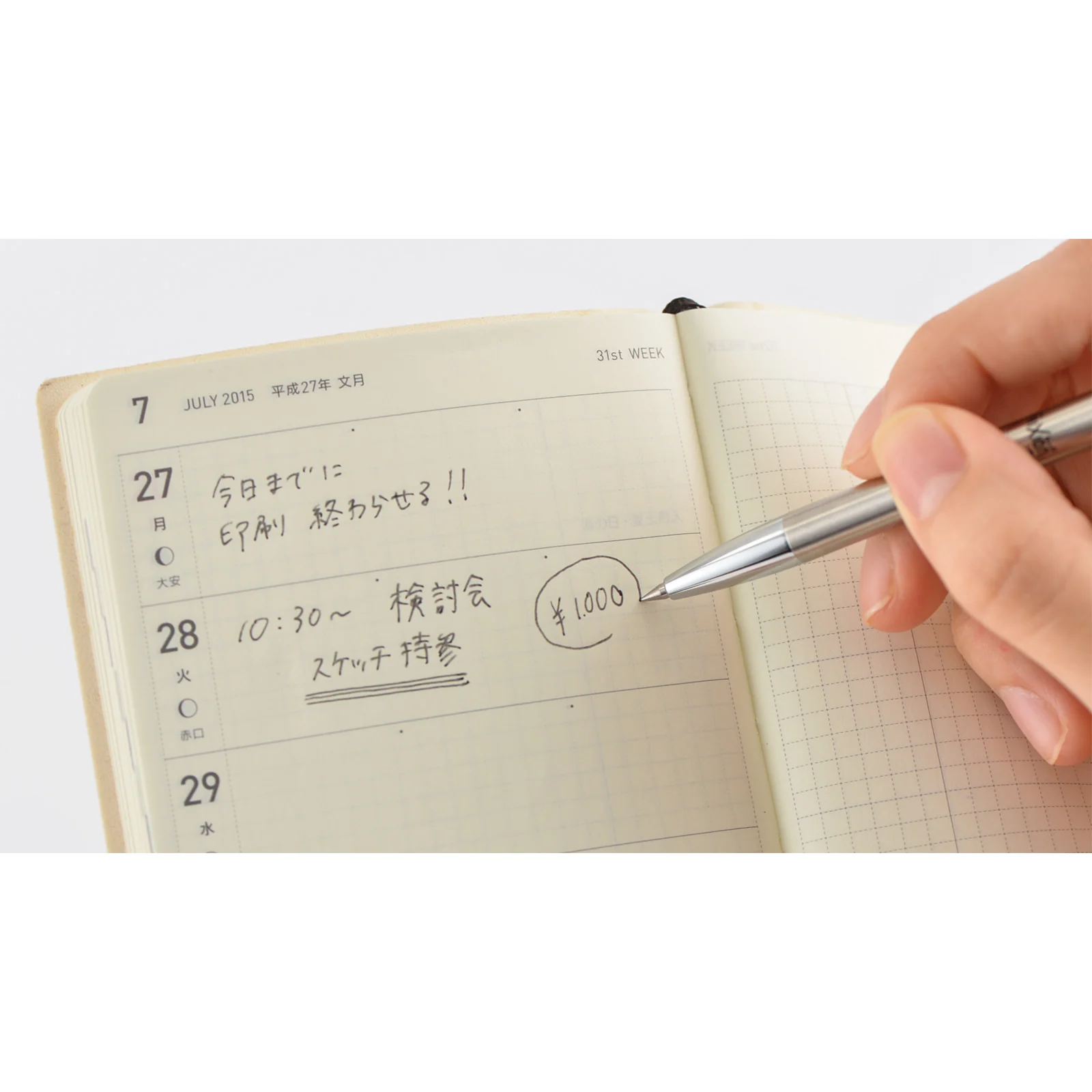 The pen tip is a slim 0.38 mm for detailed writing anywhere in the pages. The pen body and clip are made with stainless steel and have a slim, simple look that fits well in business settings.