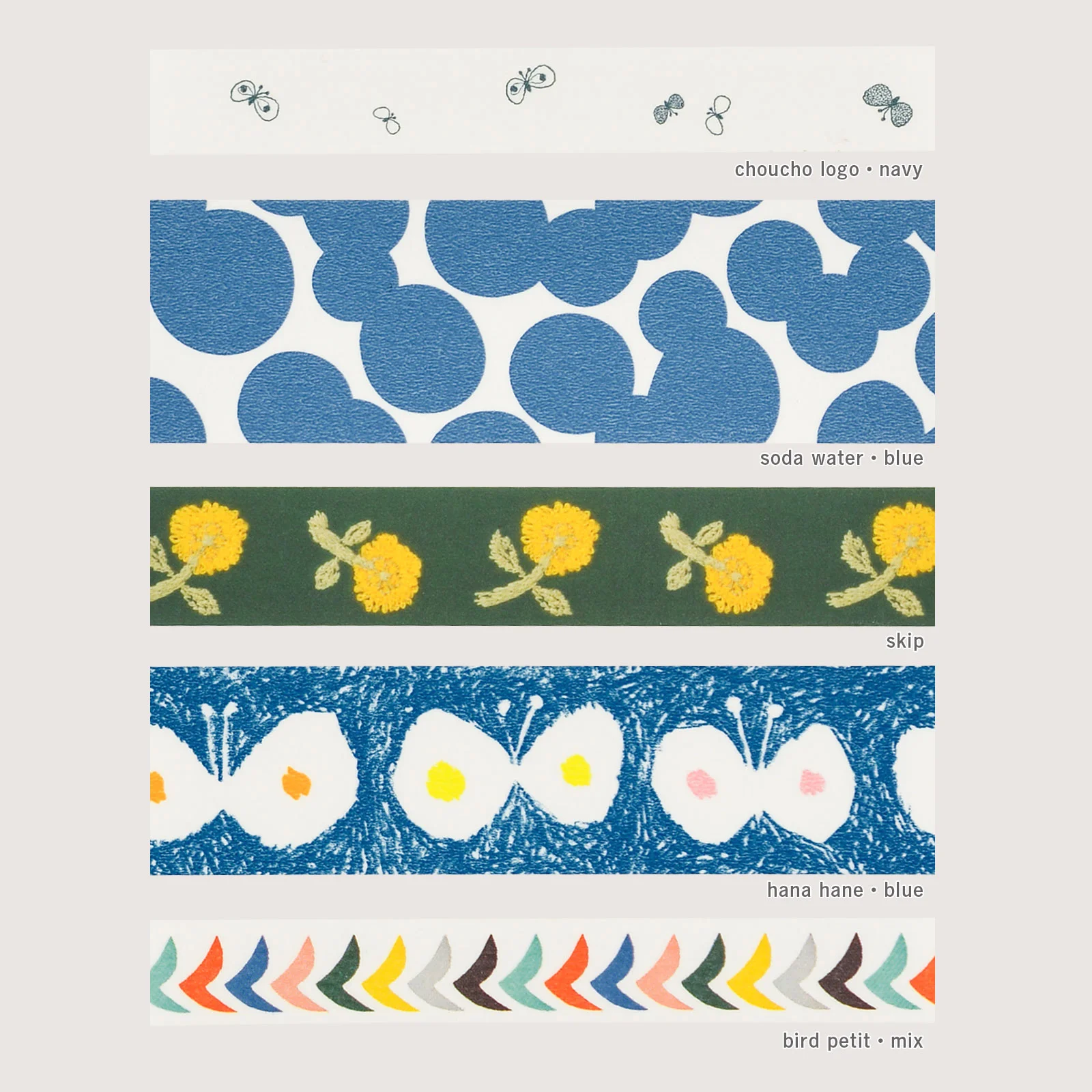 The “minä perhonen” series mt washi tape offers the characteristic warmth that can only come from hand-illustrated designs. The tape comes in a total of 16 designs, including the staple designs such as“tambourine,” “choucho” and “hana hane,” and “run run run” which shows a line of rabbits darting across the tape, and “kuro-neko” designed in the style of stamps pressed on.