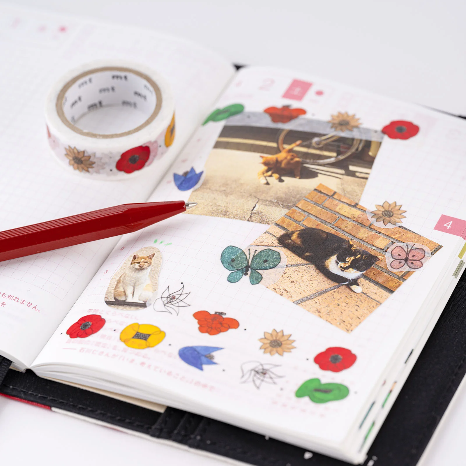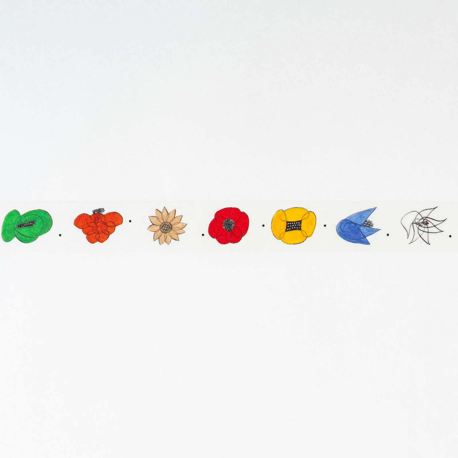 This striking washi tape is adorned with colorful flowers illustrated by painter Ichiro Yamaguchi.