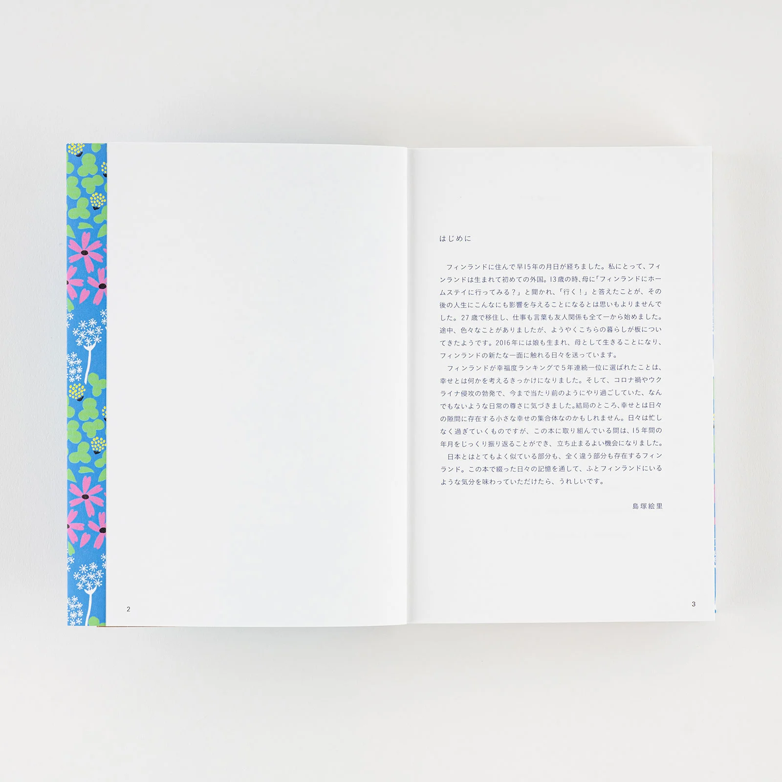 Shimatsuka moved to Finland 15 years ago, and it was there she got married, had children, and worked as a designer. She writes about her feelings towards work, parenting, family, and life in Finland with the way everyone lives among nature.