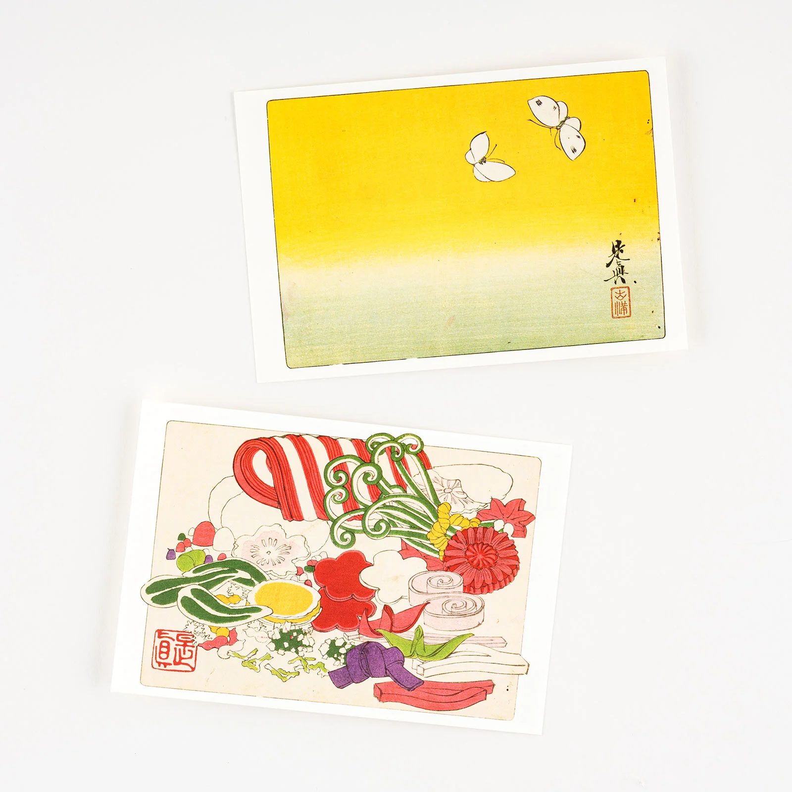 Shibata Zeshin was a lacquer artist and painter from the late Edo period into the middle of the Meiji era. This set of 5 postcards features artwork selected from his famous Tairyukyo Gafu collection. It includes two designs featured on techo covers this year: “Small White Butterfly” on an A6 size techo cover, and “Plate of Confectionaries” on a Weeks book.