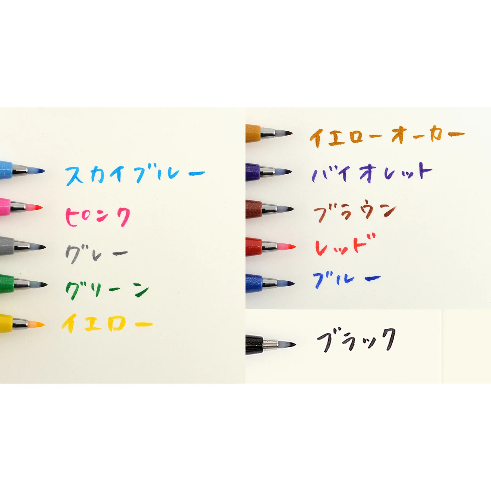 PentelBrush-Touch Felt Tip PenThese water-based markers have brush tips for expressive writing. The bright colors of the aqueous dye ink won’t transfer even on the thin pages of the planner, and the ink dries relatively quickly. The brush tips provide a smooth writing experience great for writing or outlining illustrations with dynamic line thickness. The brush tips will start out somewhat firm, but will soften over continued use for a stronger “brush” feel.