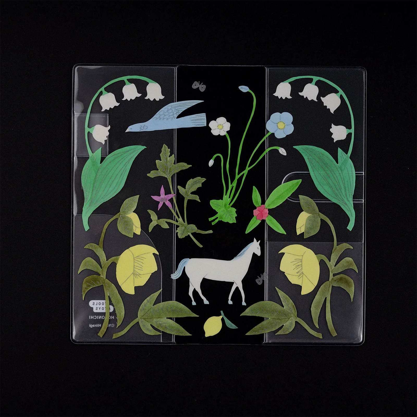 This is the decorated version of the Clear Cover, an optional, extra covering that goes directly over your Hobonichi Techo Weeks and protects your planner from wear and tear over the course of the year.
