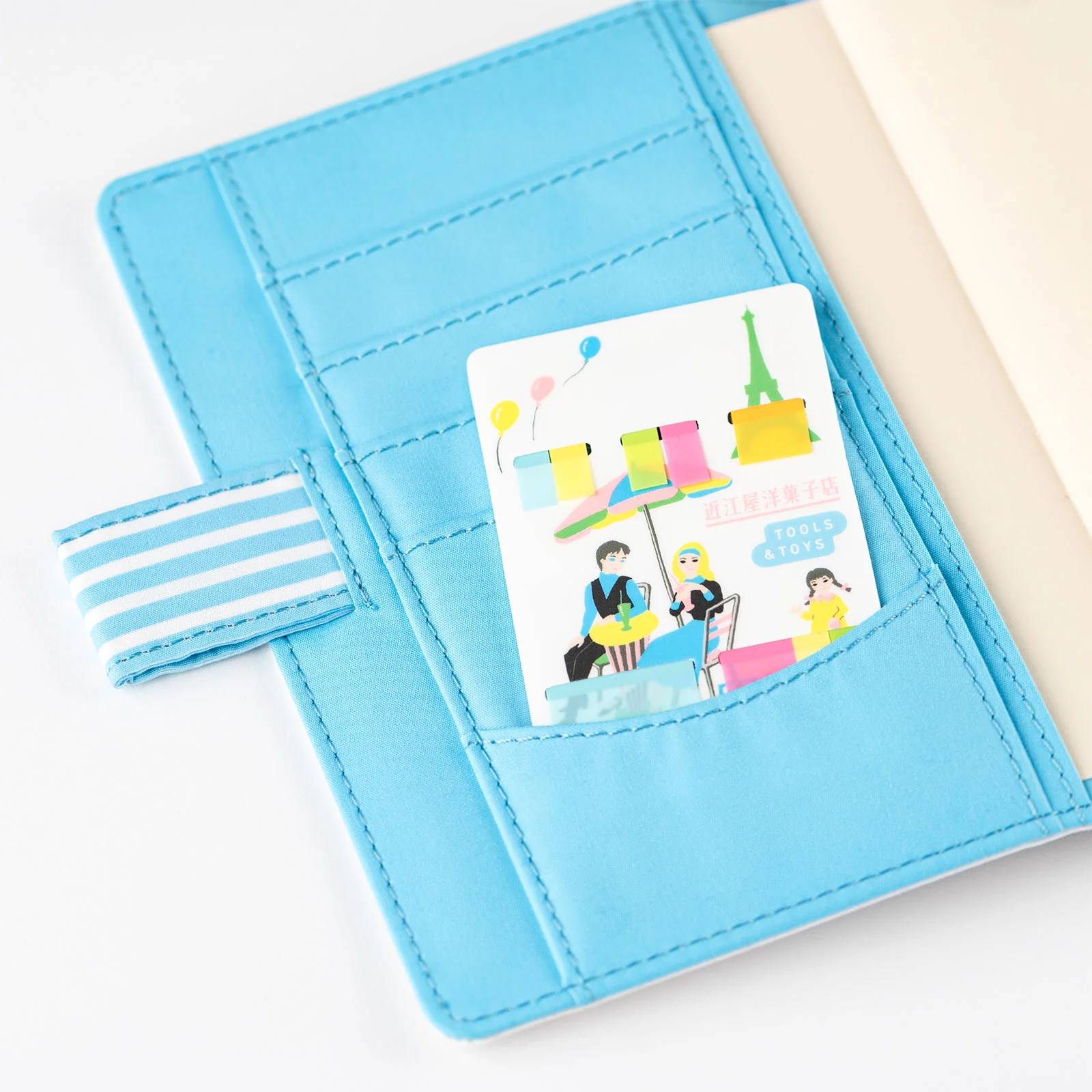 The artwork on the holder is modeled after the packaging of Omiya Yogashiten, a historical and beloved sweets shop in Kanda, Tokyo. It matches the techo cover, and the pastel-colored illustrations will brighten your day.