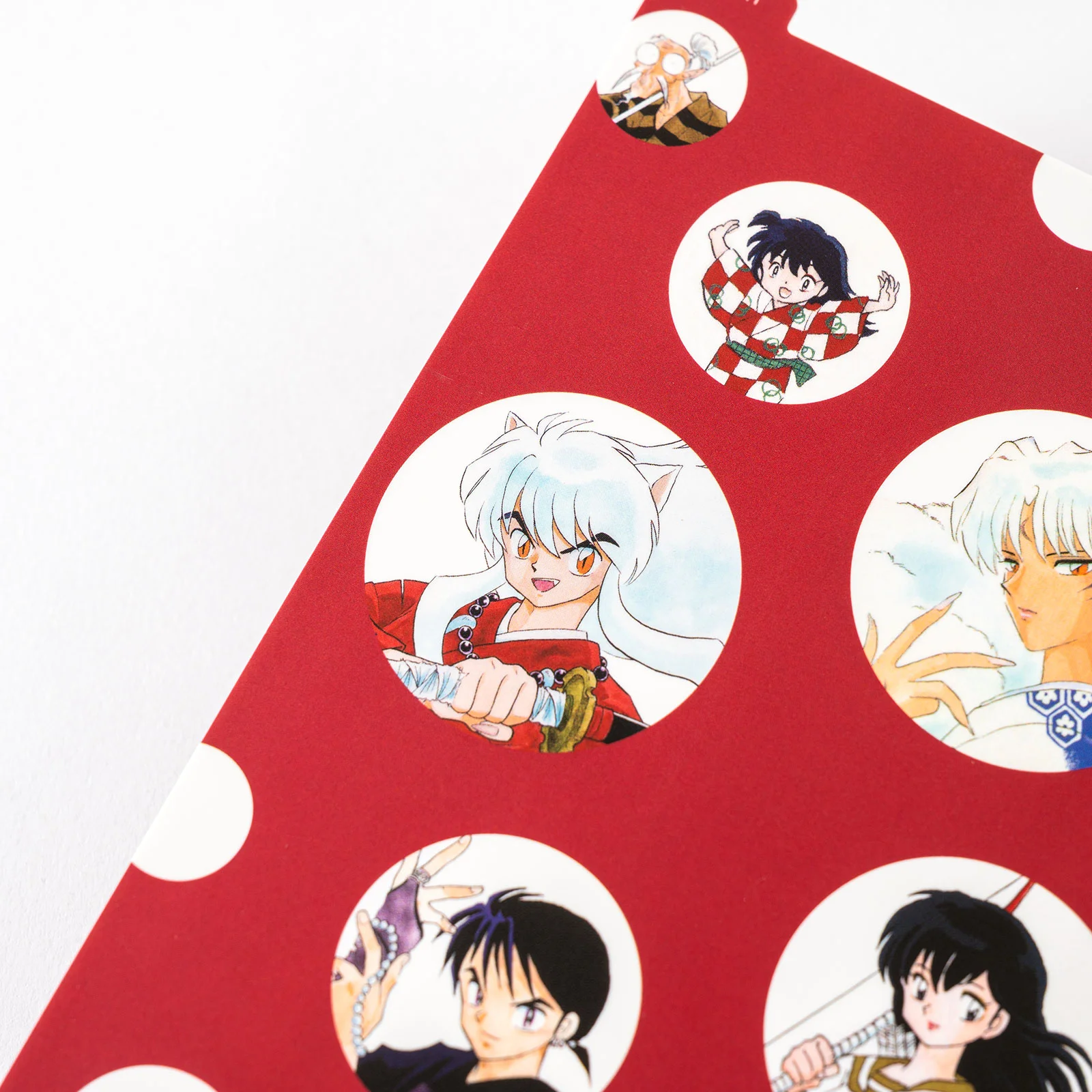 Among the dotted patterns in this pop design are the main character Inuyasha, heroine Kagome Higurashi, and their travel companions Miroku, Sango, Shippo, and Inuyasha's half-brother, Sesshomaru.