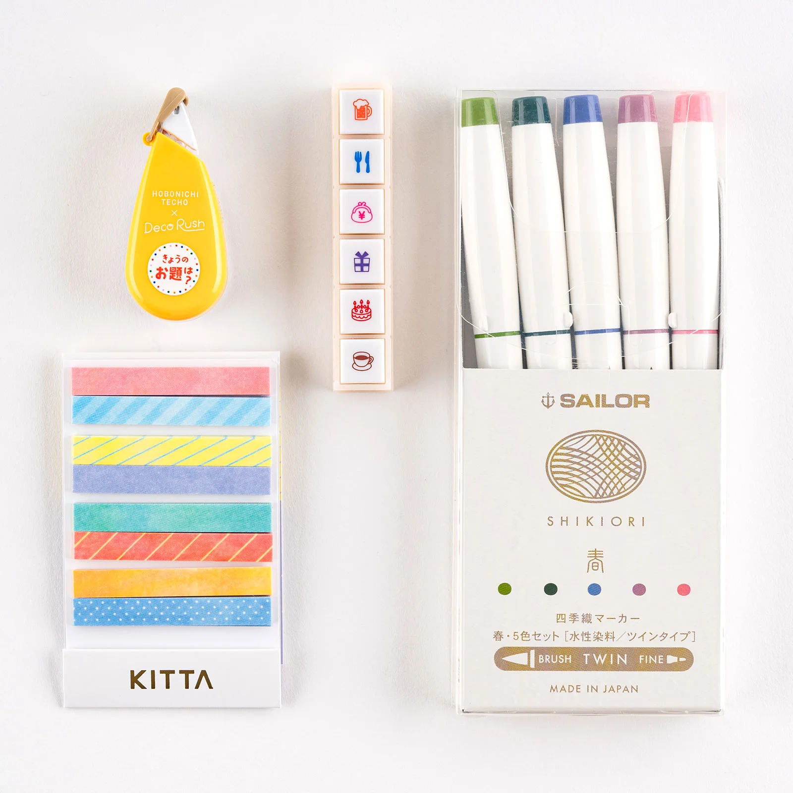 This set is recommended for anyone who wants to decorate their techo spread cutely, or are planning to use the Hobonichi Techo for the very first time. It contains a selection of four stationery items that will easily make your techo fun and lively.