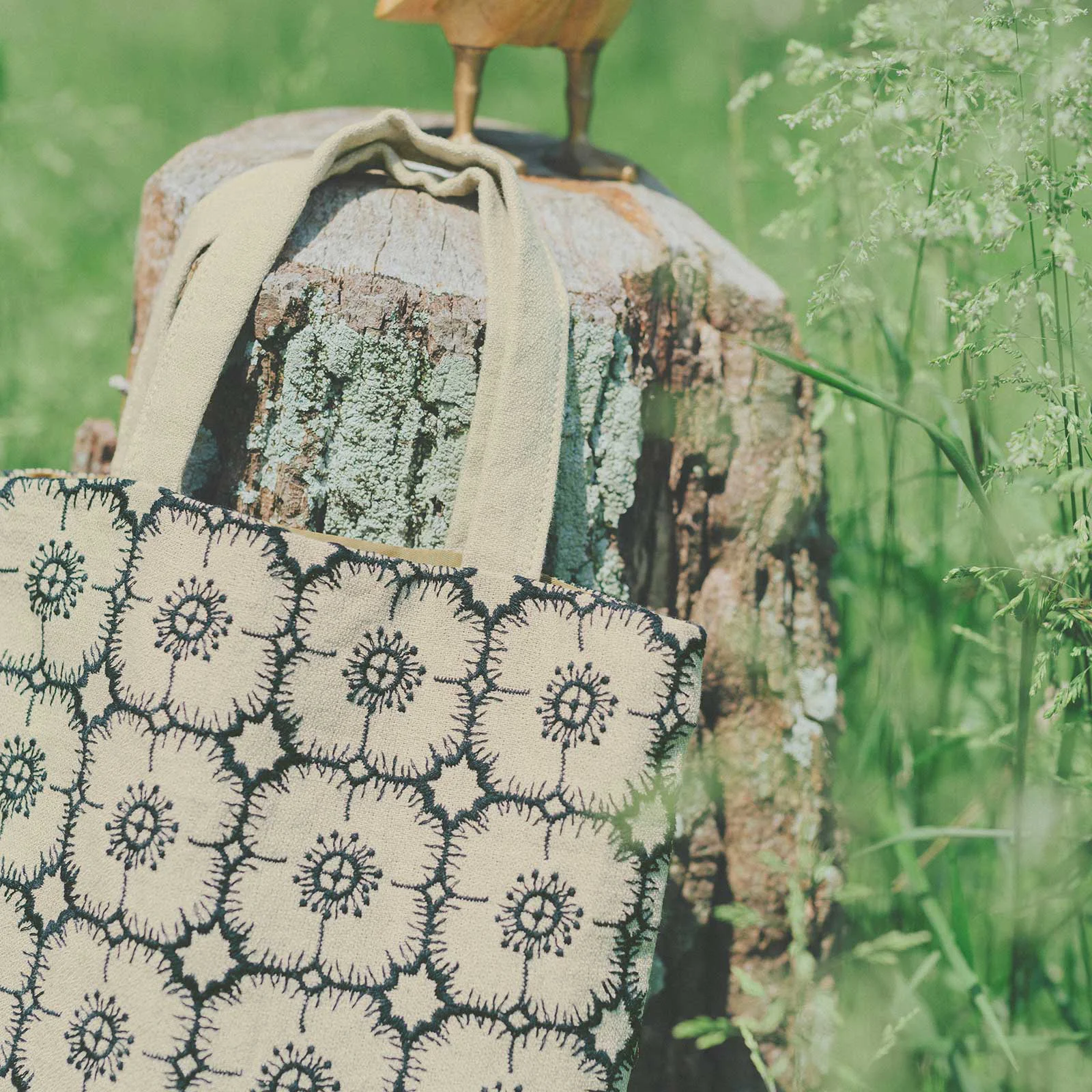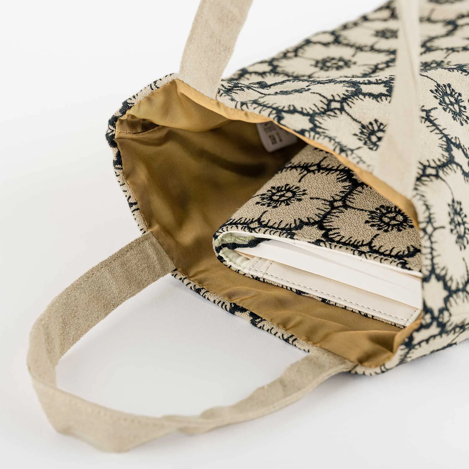 minä perhonen x HobonichiTote Bag - anemone (Beige)This small tote bag is made with the same textile used in the minä perhonen Hobonichi Techo anemone (Beige) cover. The bag is big enough to fit a Hobonichi Techo Cousin along with your wallet and any other personal items you’ll need when you’re out.