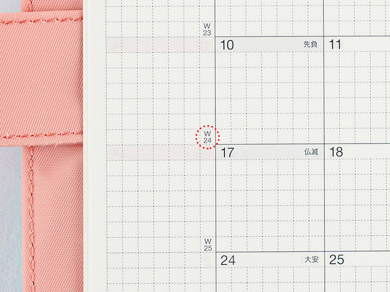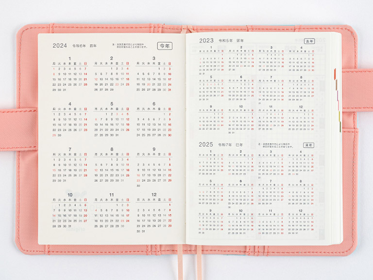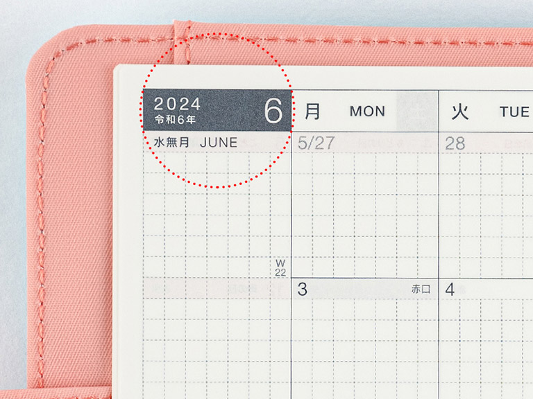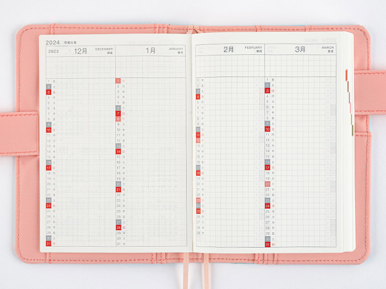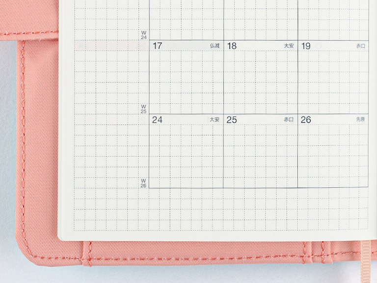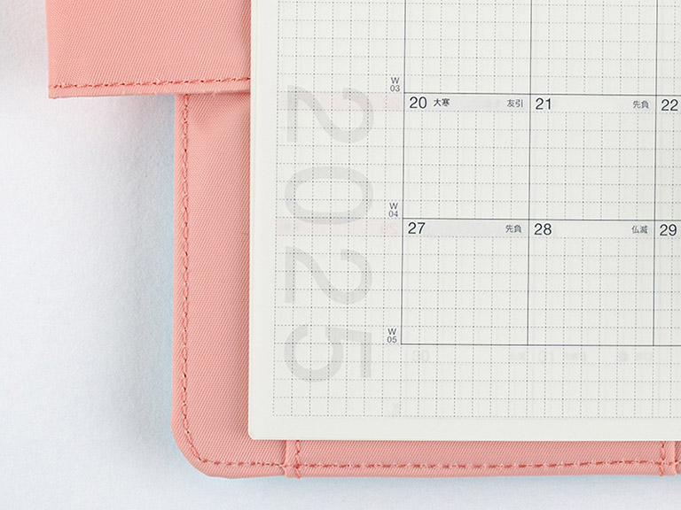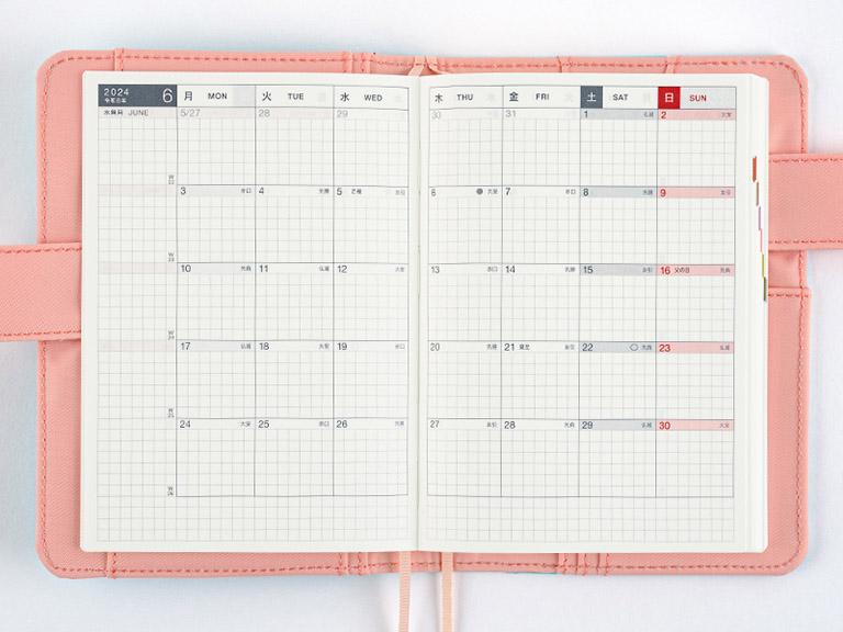 The monthly calendar is ideal for managing schedules. The graph paper design is lightly printed to make it easier to write in your plans and take notes in an even line. The blue gray and red print both allow for high visibility when writing in the calendar.