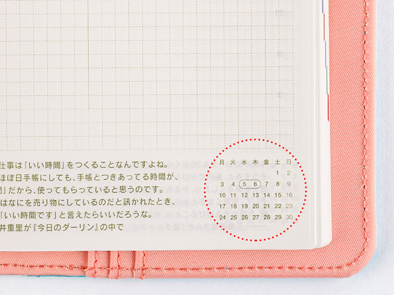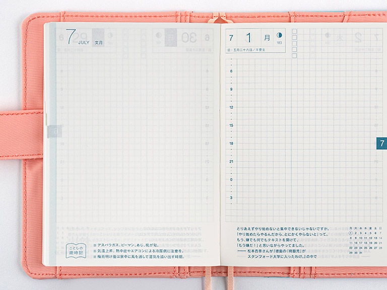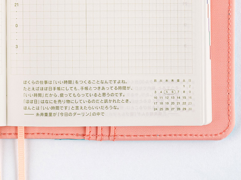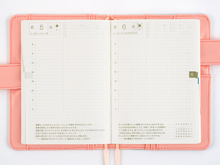 Each spread of the planner features a quote specially selected from the planner’s parent site, Hobo Nikkan Itoi Shinbun.