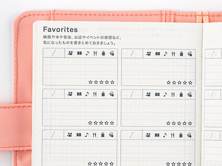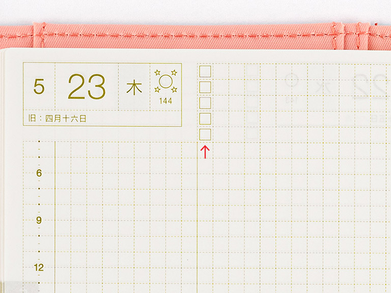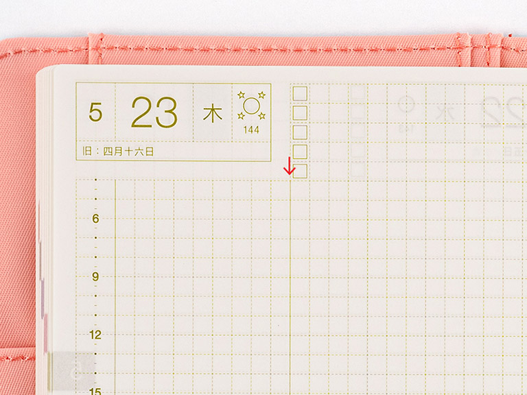 Each box is lightly printed with a graph design to make it easy to fill in a full day’s worth of plans. You can also take full advantage of the graph design by drawing out sections to allocate plans or entries visually.