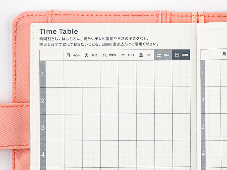 There’s also something we call the “Secret Line”: a vertical line that runs parallel along the right of the timetable. This separates the schedule on the left from the open memo pad on the right. We’ve printed it lightly enough that you can ignore it when using the page as a whole.