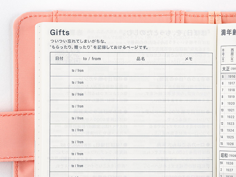 Similar to a dictionary, each month is labeled with a different colored tab on the edge of the page for easy reference, even when the book is closed. It is easy to flip ahead to write future plans, or flip back to read old pages.