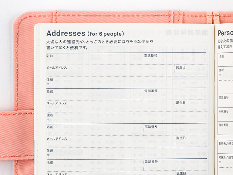 The address book allows you to write in the contact information for up to 6 people, such as family and close friends.