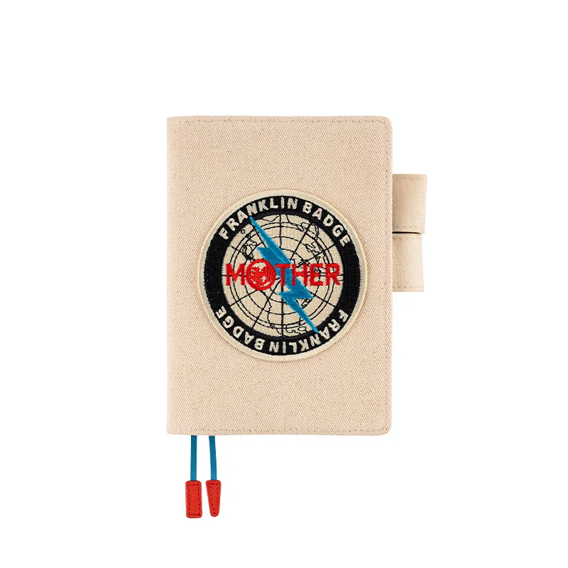 This cover design is based on Shigesato Itoi's 1994 Super Nintendo game, MOTHER 2 (EarthBound in North America). It’s made from a natural-colored canvas material adorned with an embroidered Franklin Badge patch that gives it a satisfying three-dimensional feel. If you tip the cover and view the patch at different angles, you’ll see the way its threads sparkle.