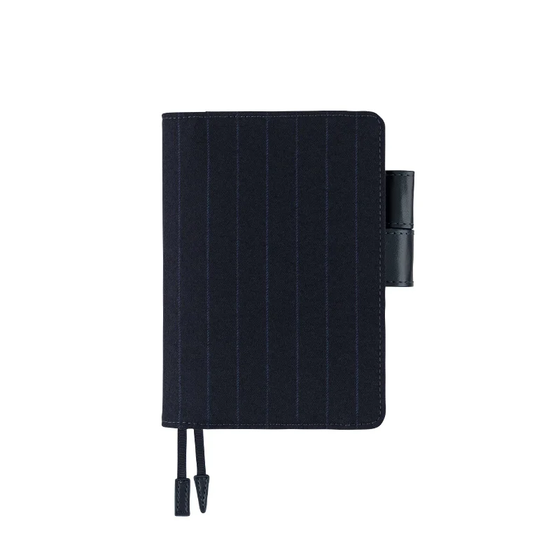 The pen holder is designed to perfectly fit the 12.2 mm (0.48”) diameter Jetstream pen offered as a free Hobonichi Store Exclusive. Pens with certain shapes and materials may be difficult to pull through the holder. The holder can fit pens up to 13.5 mm (0.53”) in diameter.