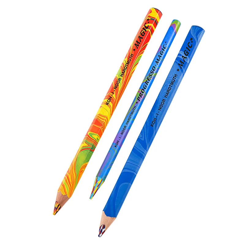 Koh-I-NoorSpecial Colored Pencils - MagicThis unique set of three marbled pencils in different shapes and thicknesses is a classic  design by Koh-I-Noor, a venerable Czech stationery maker.