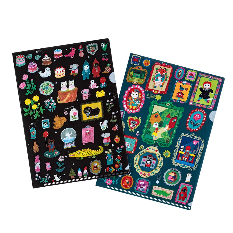 This set of 2 see-through folders fits perfectly into the pockets of A5 size Hobonichi Techo covers. The folders can store receipts, clippings, and other items to help organize your desk, or carry tickets, postcards, checkbooks and other items you want to keep portable and accessible. The artwork is by children book illustrator Ryoji Arai.