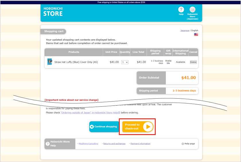 *All Hobonichi Store orders require an account to complete a purchase. New accounts can only be made at the time of a purchase.