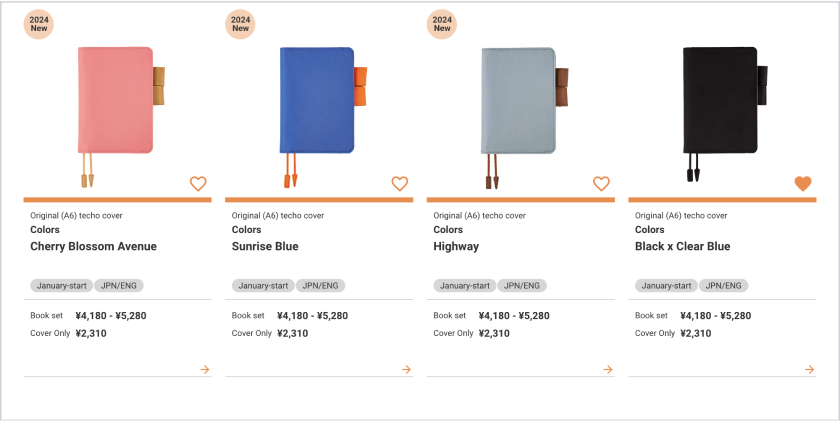 *This service is only available for the Hobonichi Techo and the Drawer Pouch. Restock notification emails are not available for accessories.