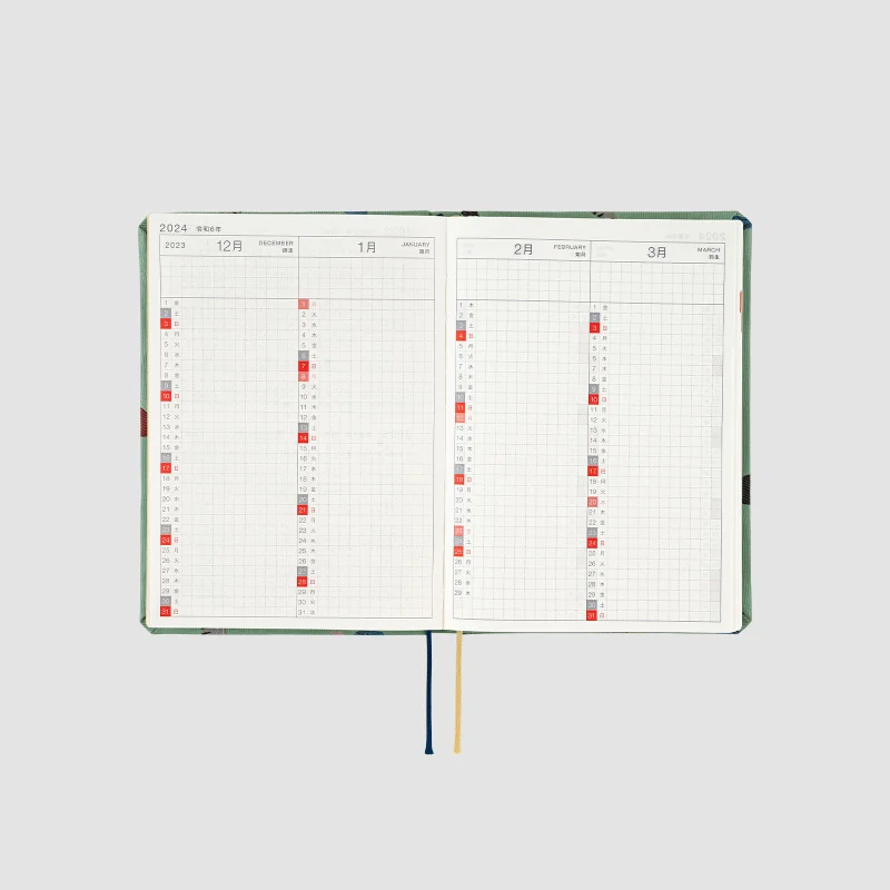 | Paper Type / Binding | Thin, light Tomoe River S paper resistant to bleeding and designed for planners / Stitch-binding |