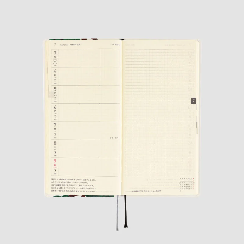 | Paper Type / Binding | Thin, light Tomoe River paper resistant to bleeding and designed for planners / Stitch-binding |