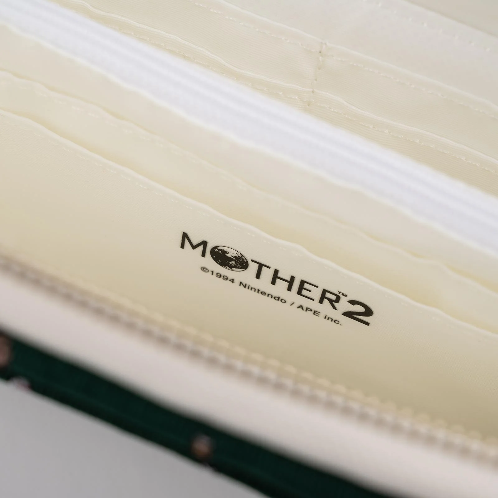 The Runaway Five is a blues band from Shigesato Itoi's 1994 Super Nintendo game, MOTHER 2 (EarthBound in North America). When they’re not rescuing our heroes, they’re performing memorable concerts. Now you can brighten every day with this upbeat crew! The dark green Jacquard weave textile gives the pouch a mature look. The pouch interior is white, and the inner pocket includes a striking image of the lovely MOTHER 2 logo.