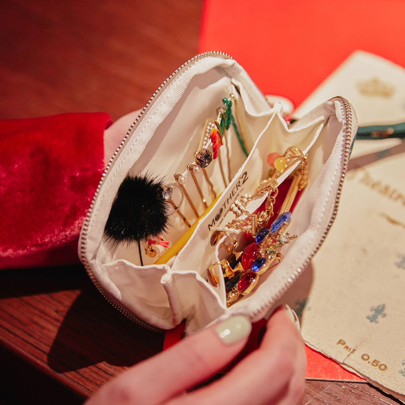 The pouch would be great for keeping precious accessories safe, as it can store belongings like earrings and bracelets. You can also keep some makeup tools in the pouch to make it extra convenient.