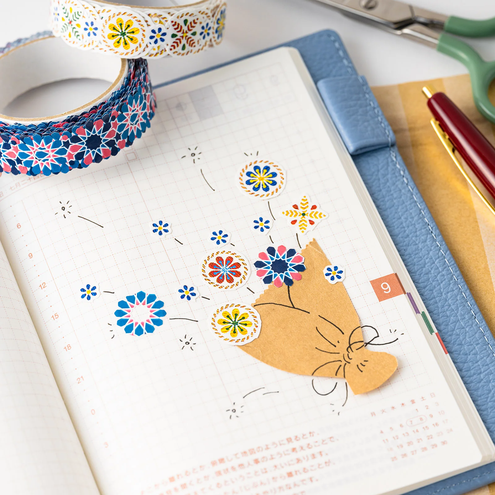 Forwatec JapanPavilioThis colorful adhesive tape is pre-cut into detailed shapes that match their printed designs, making a fresh, new take on washi tape that’s great for decorating your planner or wrapping presents.
