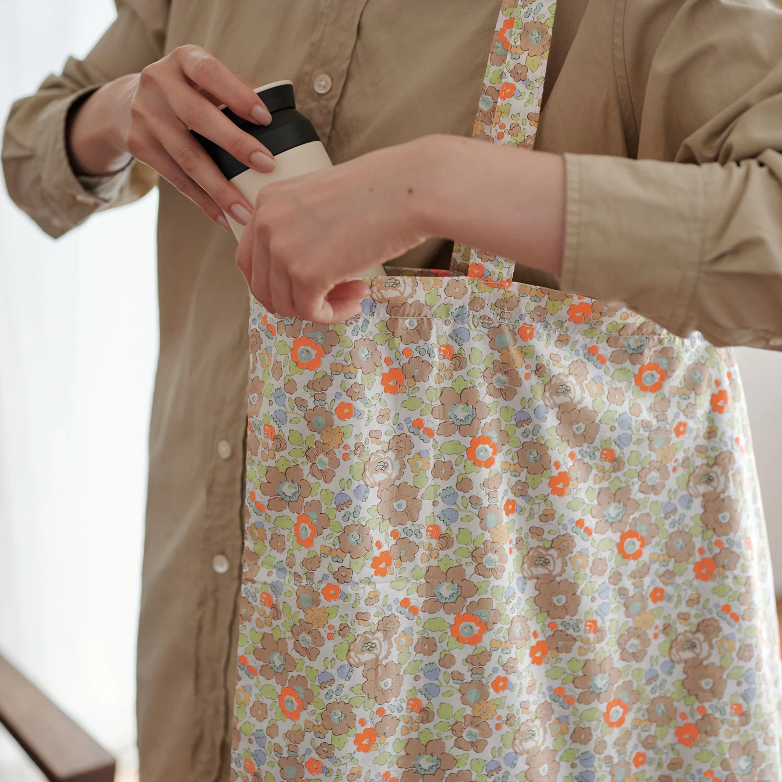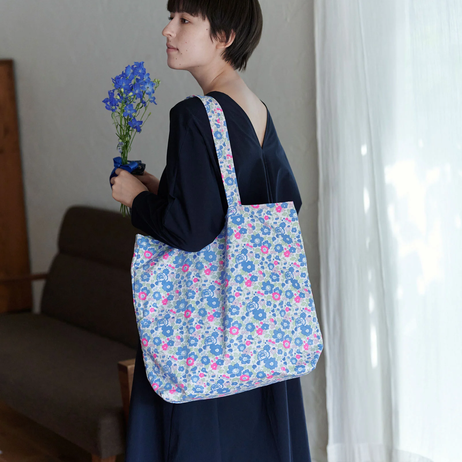 This tote bag is made from a beautiful textile from the venerable British fabric brand Liberty Fabrics. The fabric matches that of the Hobonichi Techo covers also available this year, but while each techo cover size offers its own colorway, the tote bag is available in all three colors so you can pair it with your techo cover.