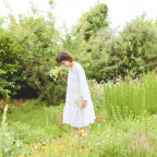 The featured textile for this cover is “Hollyhocks,” inspired by the hollyhock flower that symbolizes the English garden. The design expresses innocence, purity, and serenity; the soft colors and touches of watercolor with blotches and shading create a fantastic atmosphere as if it is surrounded by light and shadow.