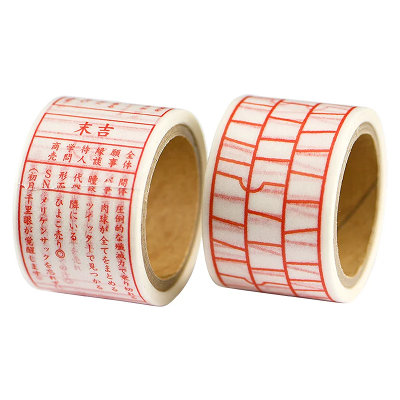 These washi tape stickers are vertically printed with omikuji fortunes and and amidakuji, a Japanese method of making random decisions.