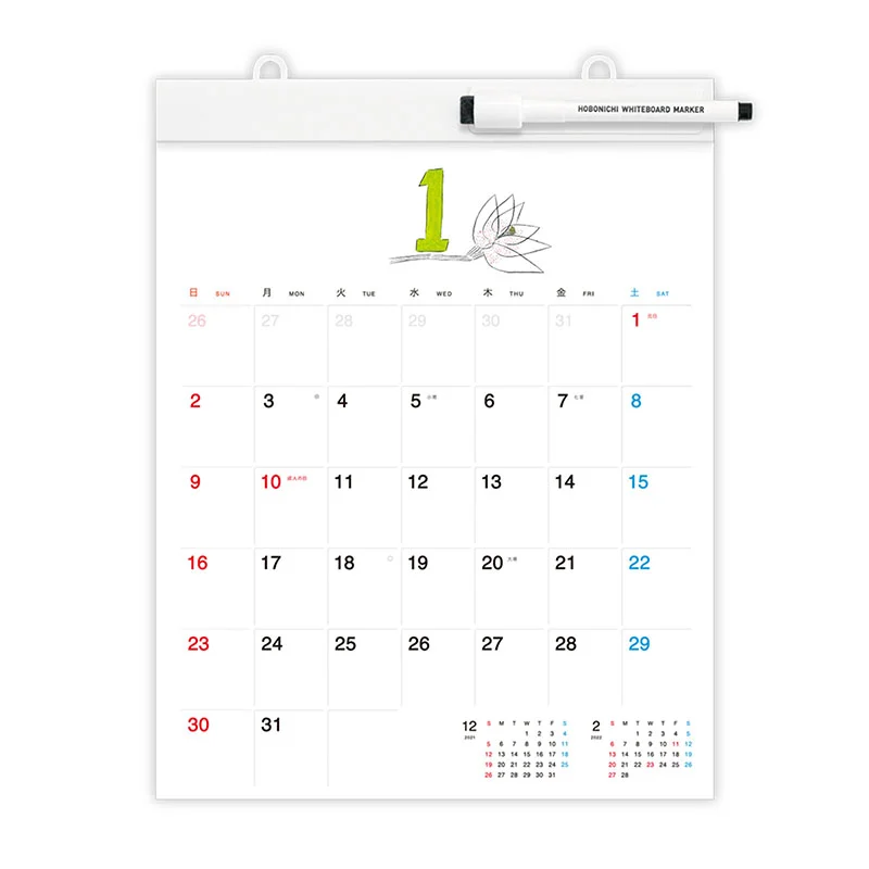 The Hobonichi Whiteboard Calendar has been a hit since it debuted in 2006. The whiteboard material provides plenty of space to write in or erase entries as many times as you want. Having an erasable calendar makes it comfortable to jot down plans, even if only tentative, knowing you can easily edit it later if anything changes. It’s also great for including notes and leaving messages for the family. The handy whiteboard marker includes an eraser on its cap for easy use.