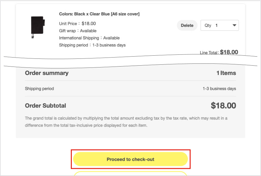 Please note that the checkout process varies depending on the shipping destination.*All Hobonichi Store orders require an account to complete a purchase. New accounts can only be made at the time of a purchase.