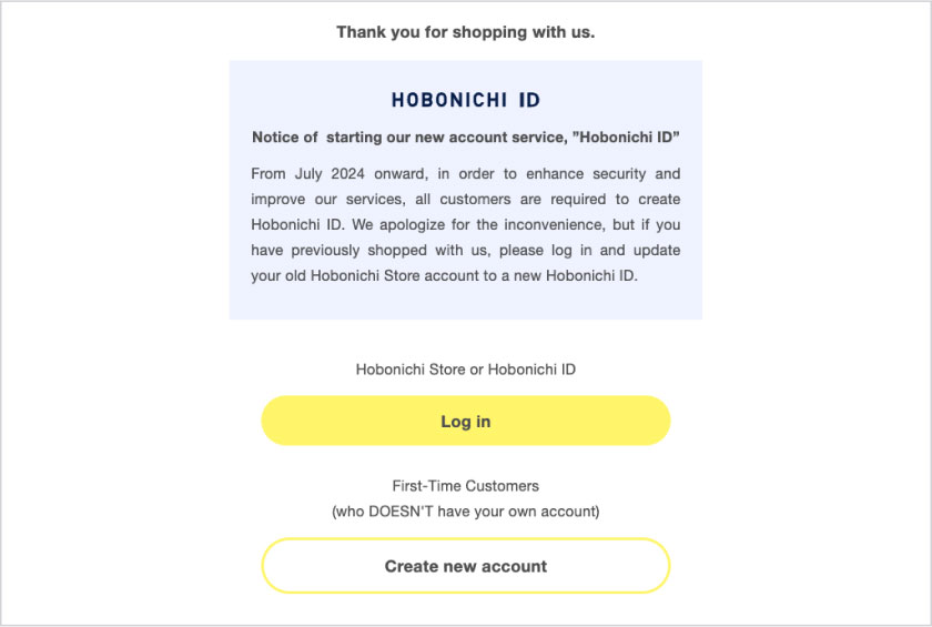 We apologize for the inconvenience, but please update your old Hobonichi Store account to a new Hobonichi ID.