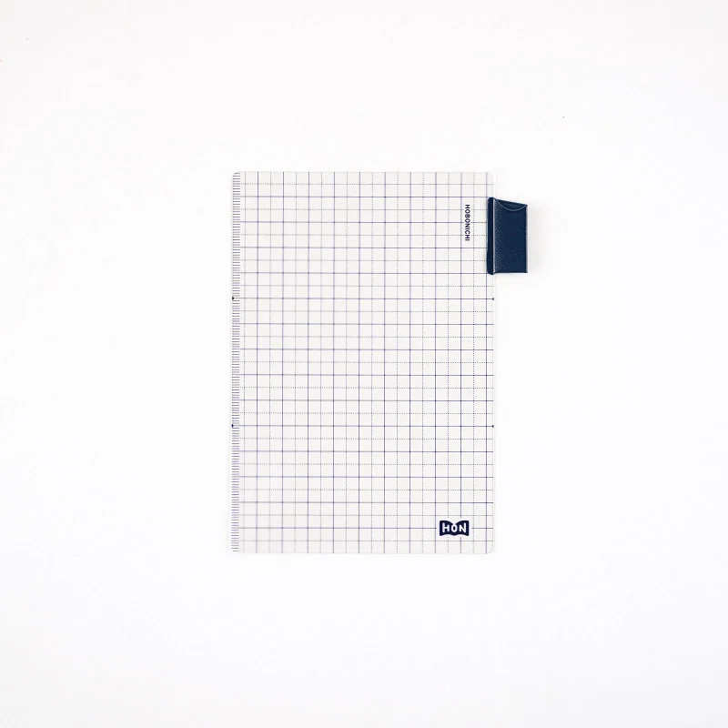 As a special exclusive only for the HON, this techo comes with a pencil board. The board is A6 size and clear, with 5mm grid lines printed across it. There are measurements printed along one side in 1mm increments, which allow for use as a ruler. It also has a pen holder attached to it where users can store pens by their clips.