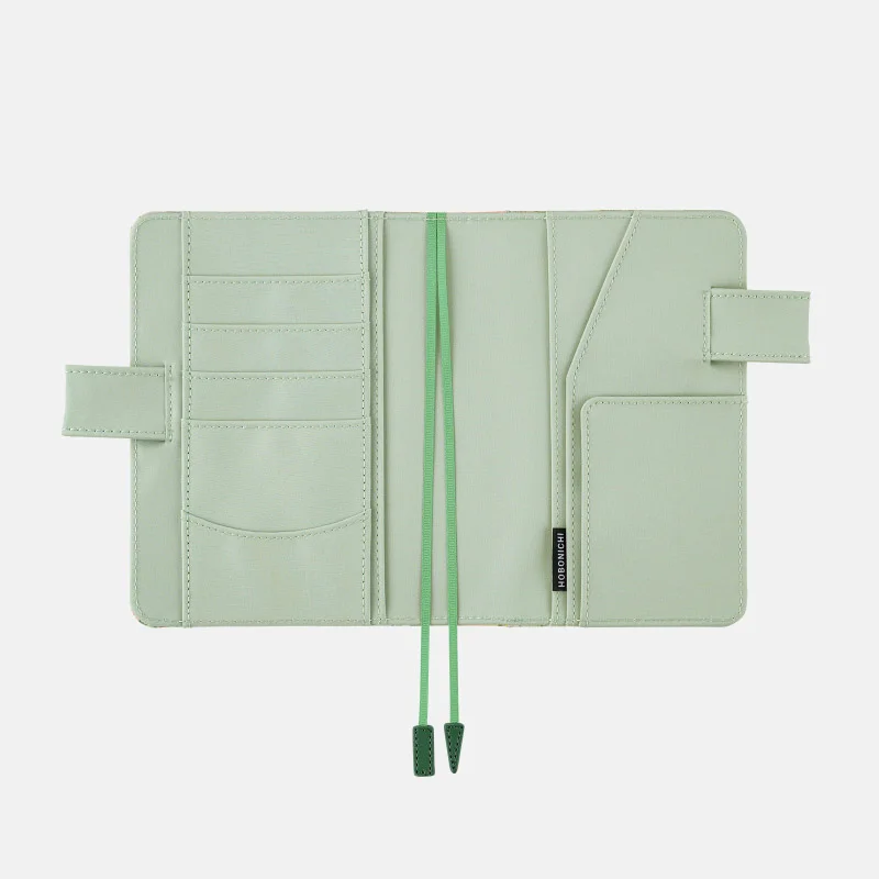 The pen holder is designed to perfectly fit the 12.2 mm (0.48”) diameter Jetstream pen offered as a free Hobonichi Store Exclusive. Pens with certain shapes and materials may be difficult to pull through the holder. The holder can fit pens up to 13.5 mm (0.53”) in diameter.