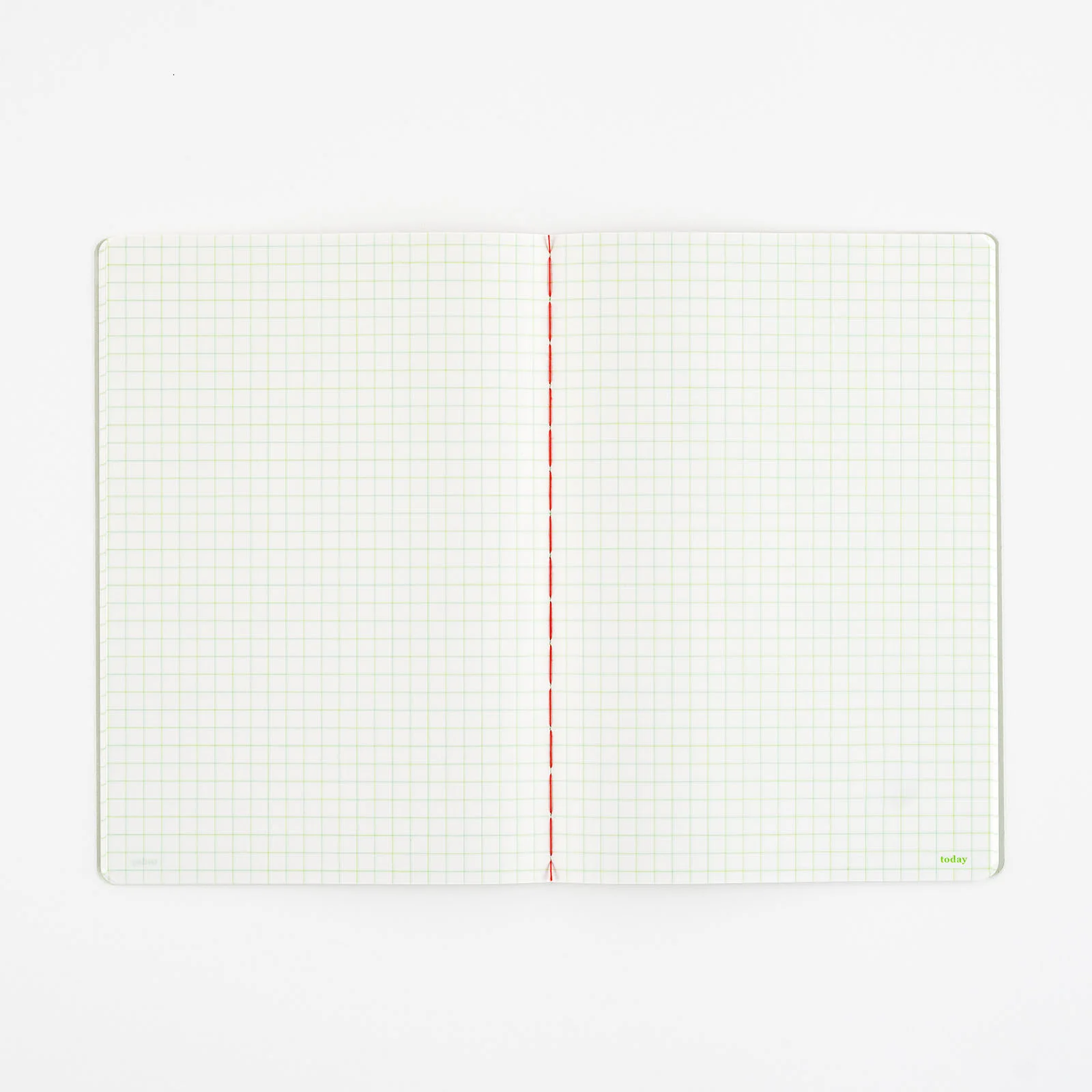 The pages have a 5mm graph paper printed in green, and the cover is a pale gray.