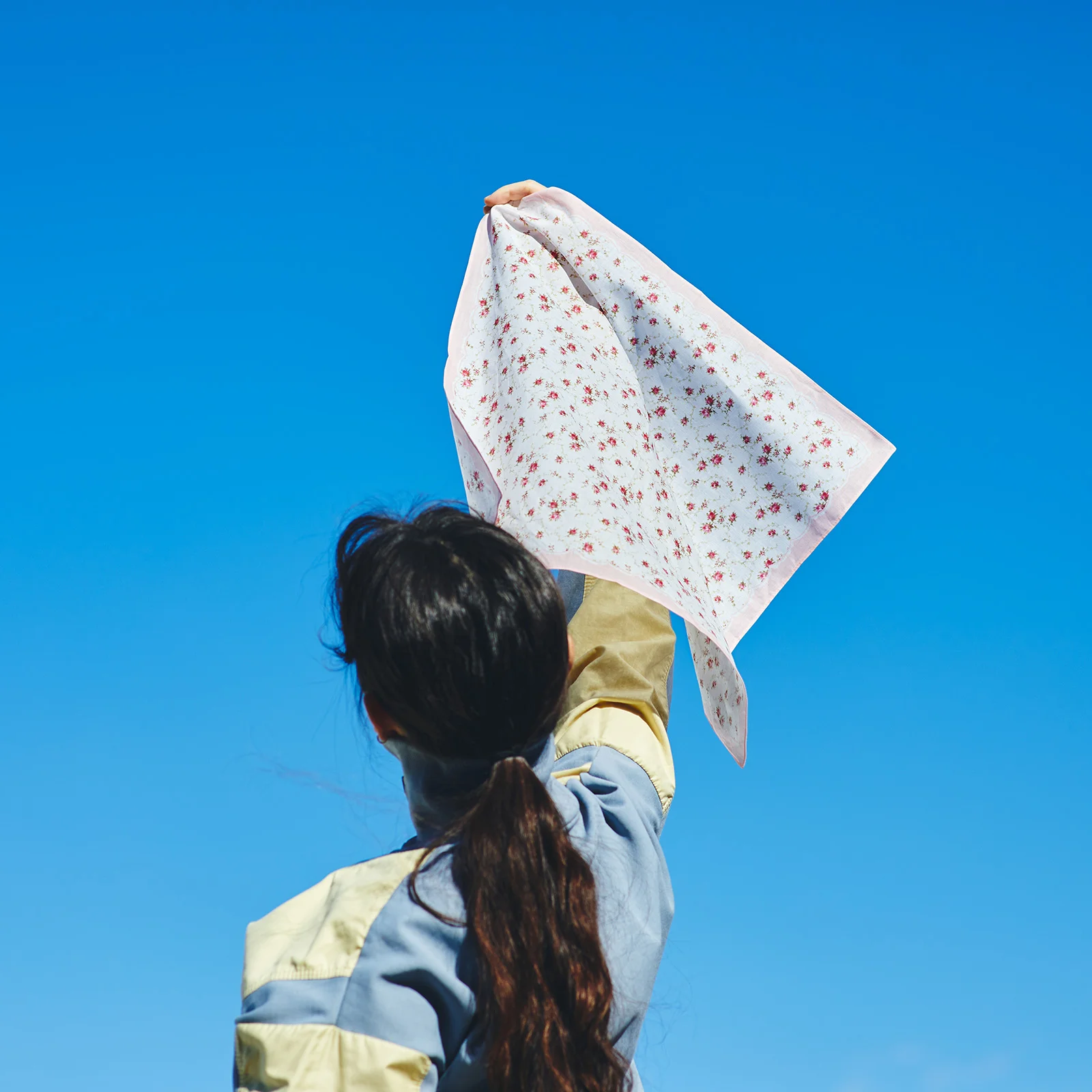 The handkerchief is made 100% from cotton. The large 46cm x 46cm size allows you to not only use it as a handkerchief but to wear it on your bag or to wrap it around your neck to accent your look.