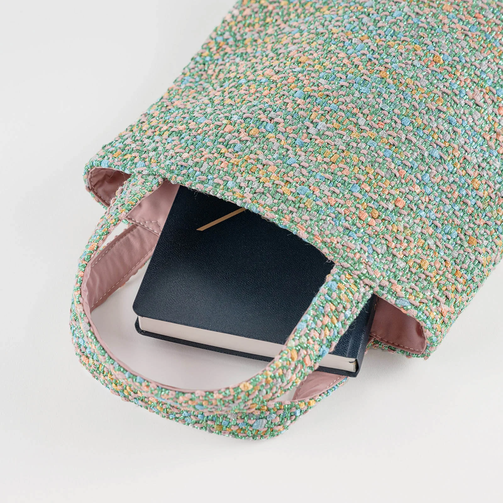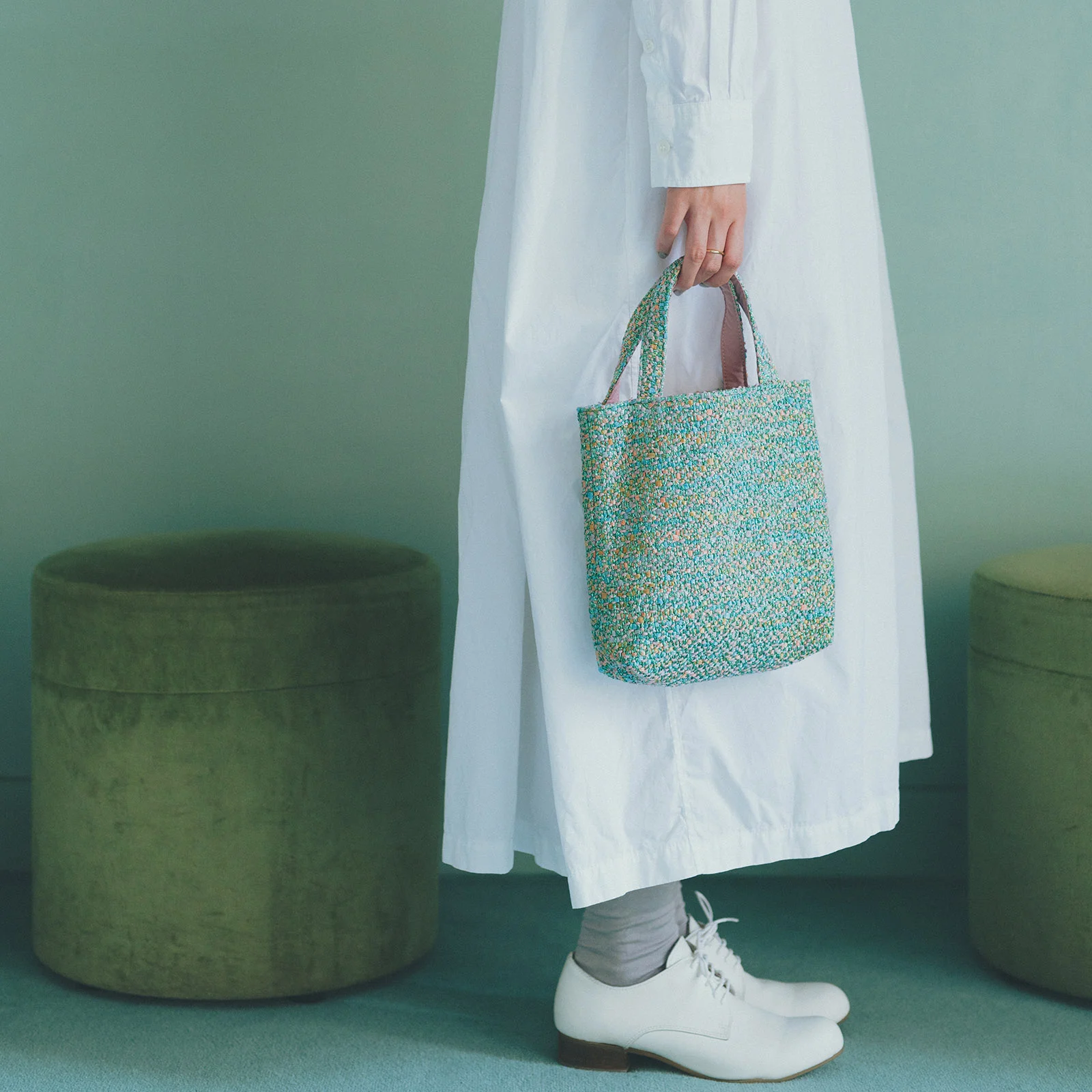 This is a small tote bag made from the gorgeous tweed fabric from Laurent Garigue, a world-class tweed manufacturer based in London. Although the size is compact, it has a gusset and provides lots of storage. It’s the perfect size to keep your wallet, techo and other personal items you’ll need when you’re out.